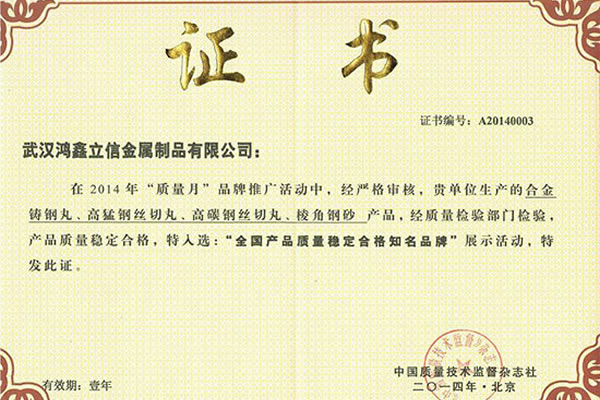 武漢鴻鑫立信金屬制品有限公司主要從事鋼丸、鋼絲切丸、鋼砂等除銹防腐耗材的生產(chǎn)和銷售。公司所有產(chǎn)品均通過ISO9001**質(zhì)量認(rèn)證,2014年更獲得了第三屆中國金屬磨料行業(yè)具有影響力品牌-華尊獎。董事長陳群芝女士從事行業(yè)17年來專注為客戶節(jié)約鋼丸消耗成本,2014年獲得了華尊獎-中國品牌建設(shè)實踐百名創(chuàng)新很好企業(yè)家的榮譽。服務(wù)過的國家建設(shè)項目有:北京鳥巢體育館、遼寧號航母、杭州灣跨海大橋、南海軍艦、成都雙流**機場、南車集團動車檢測中心、武漢火車站、武漢天興洲大橋等,同時服務(wù)的行業(yè)囊括橋梁制造、船舶制造、汽車制造、火車車輛制造、大理石打磨、鑄件清砂、各種機械制造表面清理等。鴻鑫鋼丸,值得信賴。